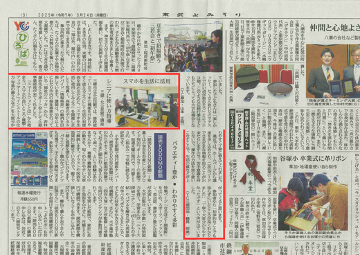 福祉のニッカが三郷市を中心に行っているスマホ教室が、3月24日付けの東武よみうりに掲載されました!